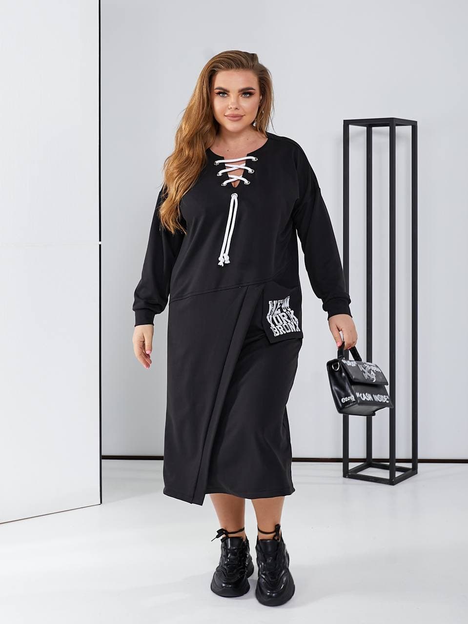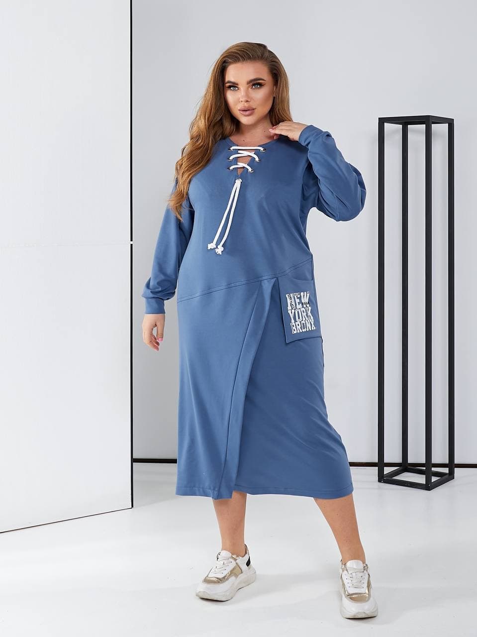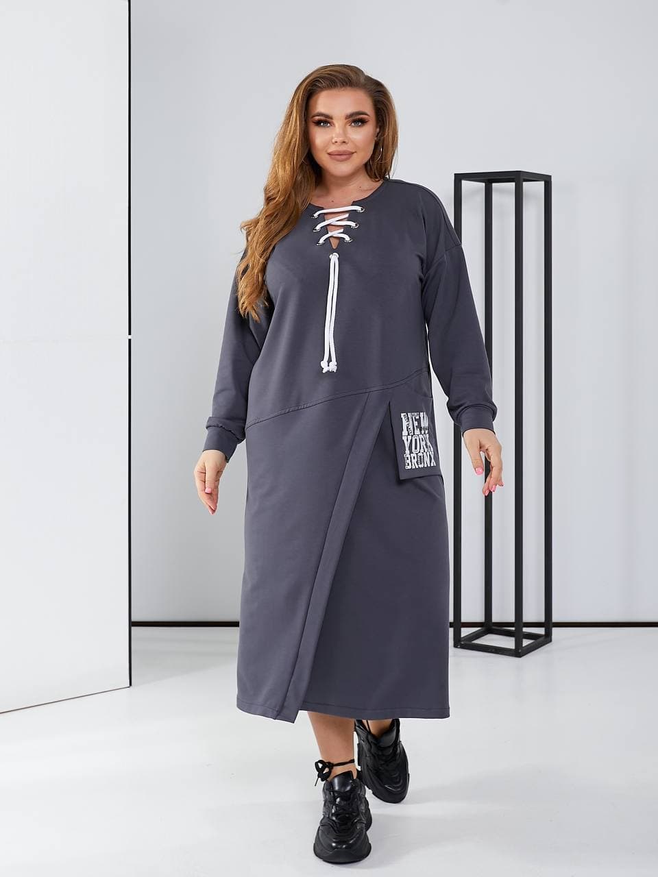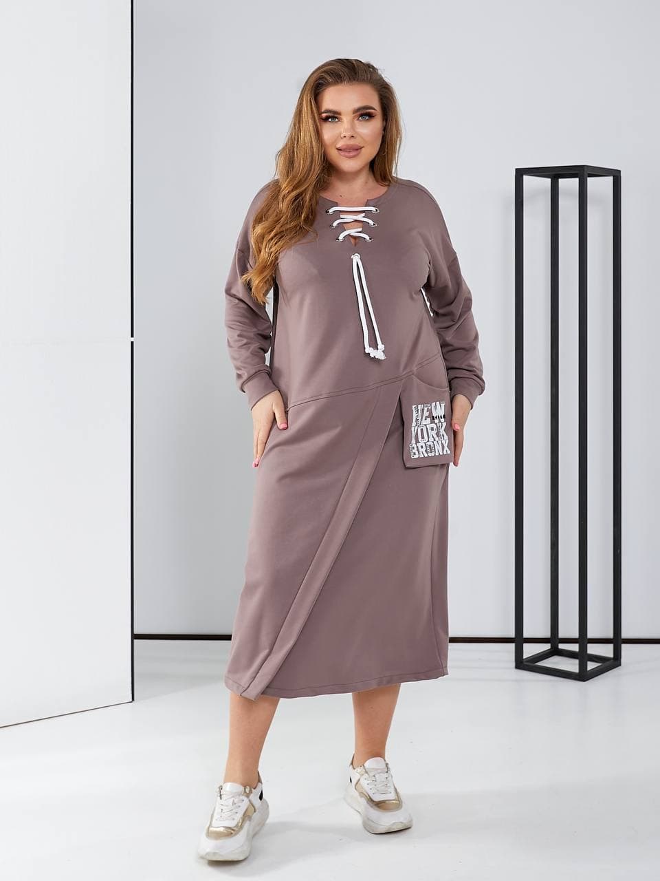 Стильне плаття в спортивному стилі з цікавою шнурівкою, кишеня декорована накатом.