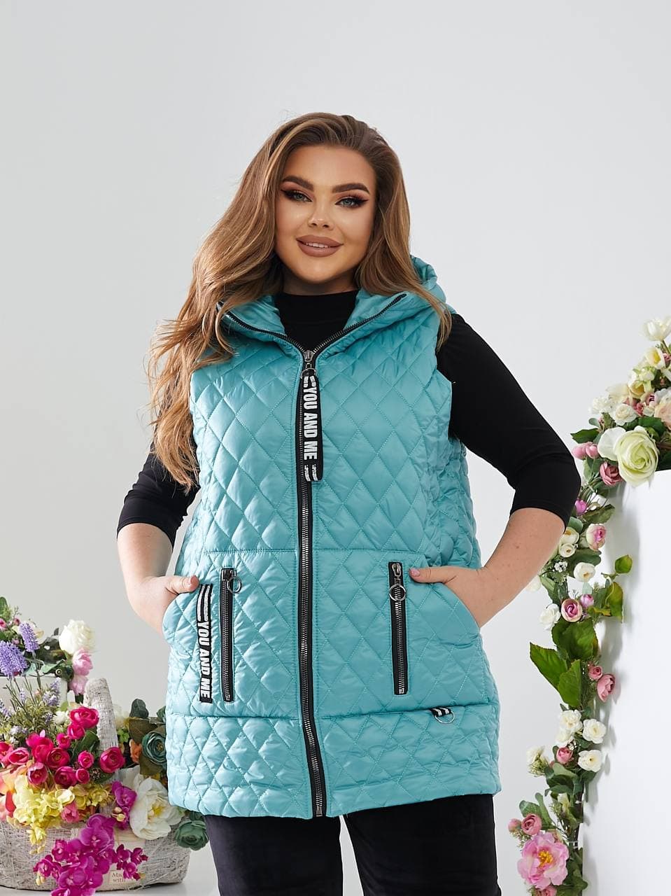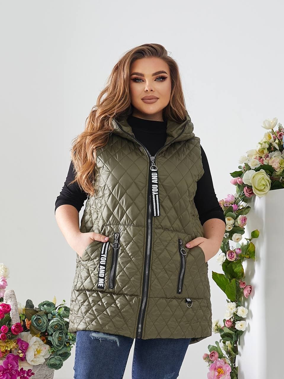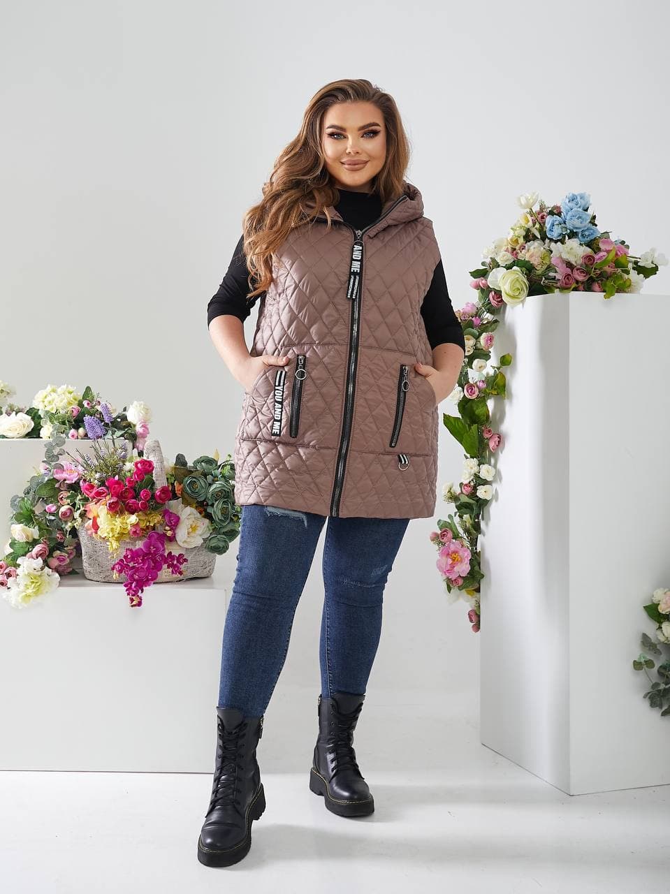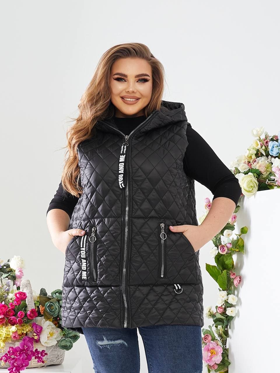 Стильна стегана жилетка з накладними кишенями, зручний глибокий капюшон, якісна фурнітура.