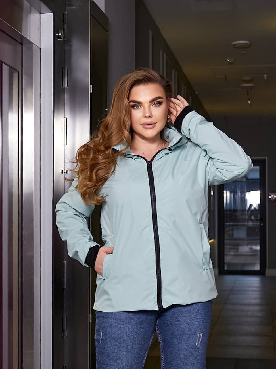 Жіноча ветрівка з капюшоном на підкладці блакитного кольору