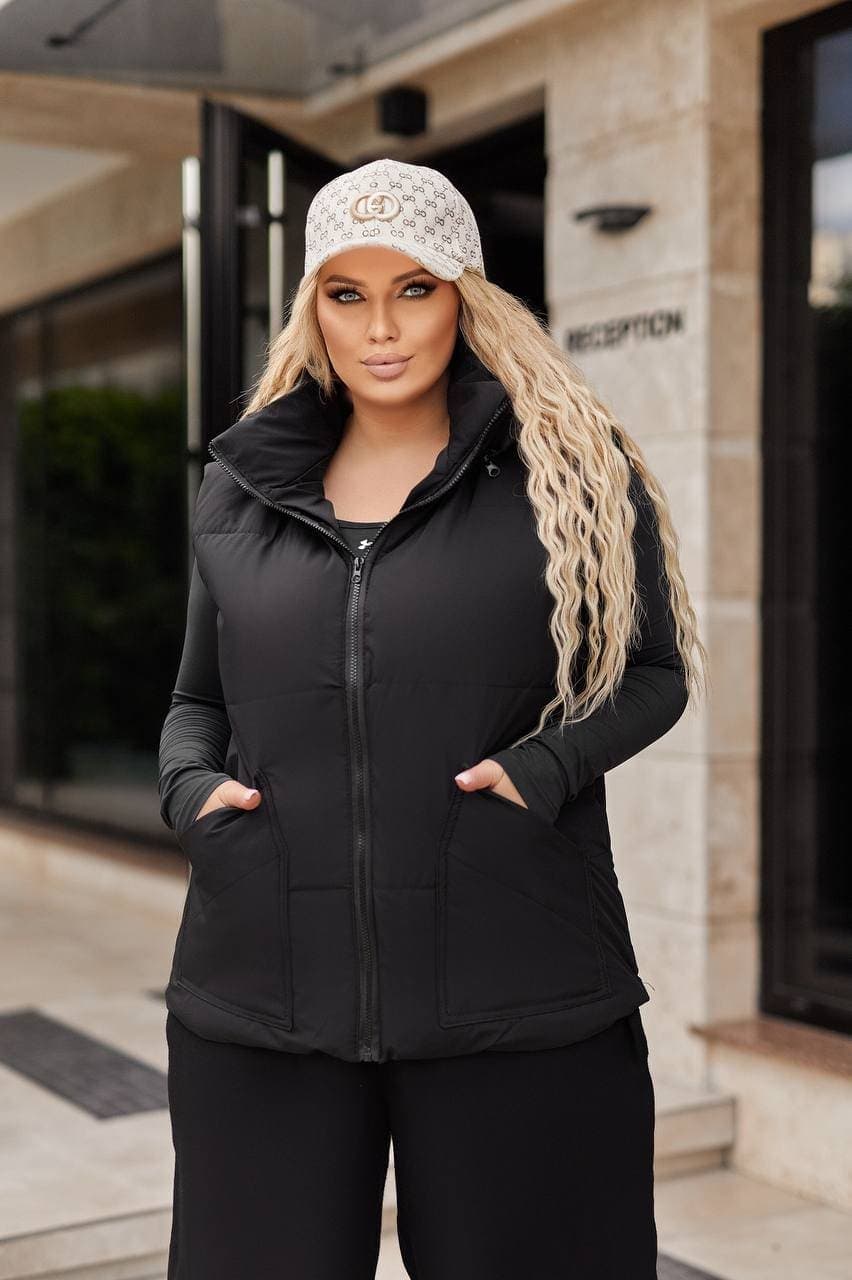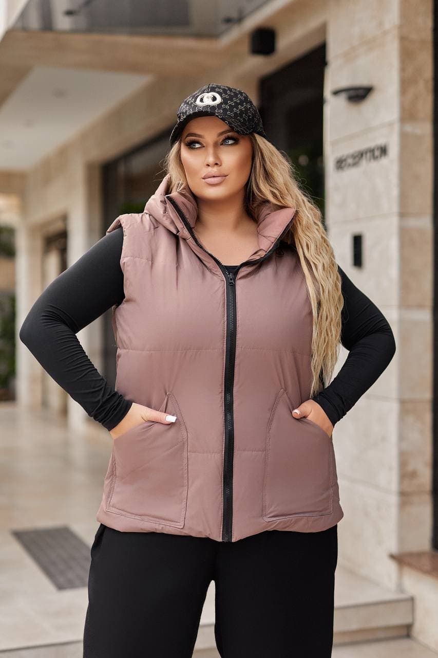 Жіноча жилетка з капюшоном колір сіро-оливковий